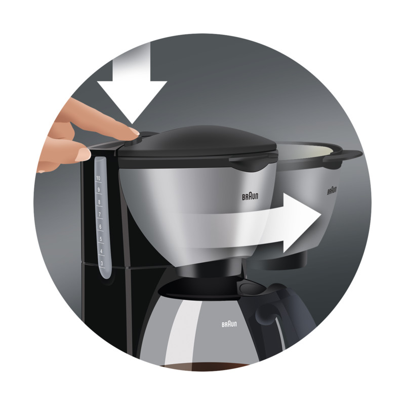 | 過濾器釋放按鈕,可輕鬆放入咖啡過濾器 | |