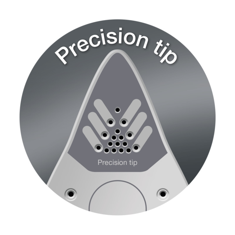 加強精準熨咀可輕鬆去除難以到達的區域(例如衣領和接縫)上頑固的皺褶